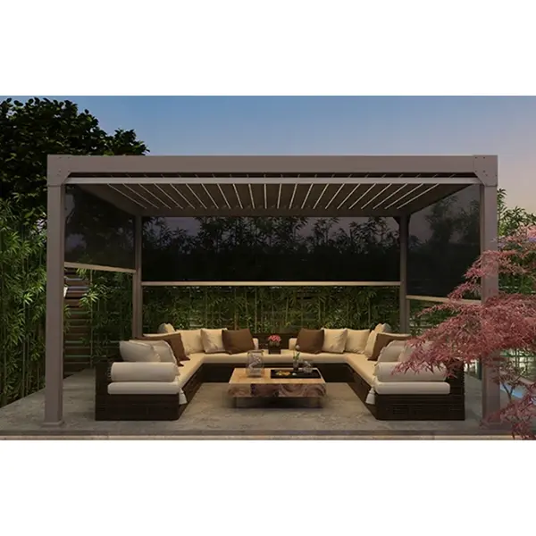 ஒரு தொழில்முறை கெஸெபோ உற்பத்தியாளர் என்ற முறையில், இறக்குமதி செய்யப்பட்ட அமைதியான மோட்டார்கள் மற்றும் மறைக்கப்பட்ட வடிகால் அமைப்பை இணைத்து, எங்களின் எலக்ட்ரிக் ரிட்ராக்டபிள் கெஸெபோஸில் நுணுக்கமான வடிவமைப்பை இணைத்துள்ளோம். இது எங்கள் கெஸெபோஸ் அறிவார்ந்த கட்டுப்பாடு, கட்டமைப்பு நிலைத்தன்மை மற்றும் வானிலை எதிர்ப்பு ஆகியவற்றின் முக்கிய பண்புகளை உறுதிப்படுத்துகிறது, அதே நேரத்தில் அளவு, நிறம் மற்றும் செயல்பாட்டு தொகுதிகளின் தனிப்பயனாக்கப்பட்ட தனிப்பயனாக்கலை ஆதரிக்கிறது. லைட்டிங் மற்றும் ரோலர் ப்ளைண்ட்ஸ் போன்ற உபகரணங்களை அவர்கள் ஒருங்கிணைத்து, வில்லா முற்றங்கள், மொட்டை மாடிகள் மற்றும் வணிக ஓய்வு பகுதிகள் போன்ற பல்வேறு காட்சிகளுக்கு ஏற்றவாறு, பல்வேறு வெளிப்புற இடங்களுக்கு ஒரு ஸ்மார்ட் மற்றும் நடைமுறை ஓய்வு அனுபவத்தை உருவாக்கலாம்.